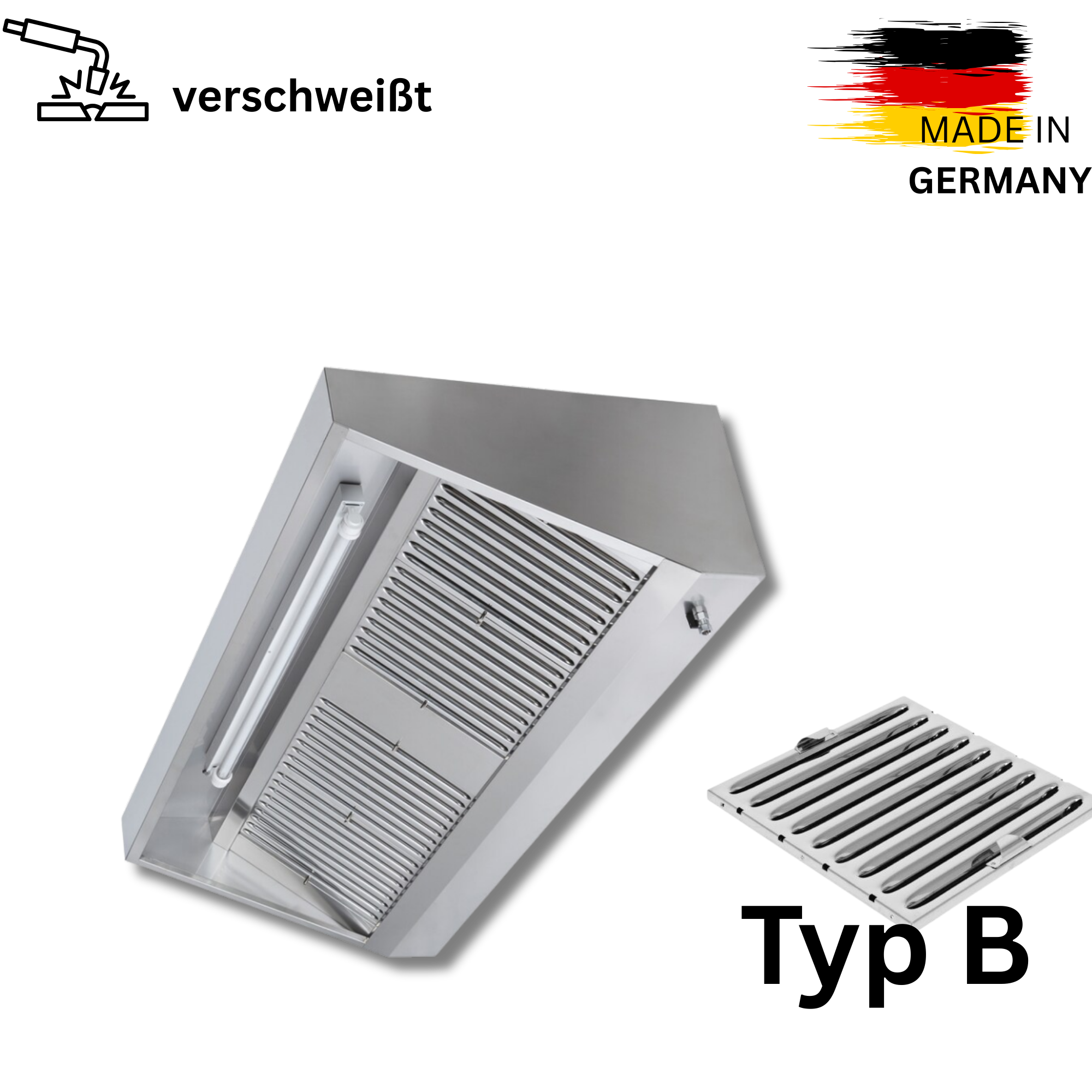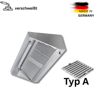 90er Edelstahl Wandhaube - 90cm tief - ohne Motor - mit Flammenschutz Filter und LED Lampe - VM Europa