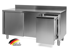 Edelstahl Arbeitsschrank mit Abfallbehälter rechts, mit Zwischenboden - alle Größen montiert