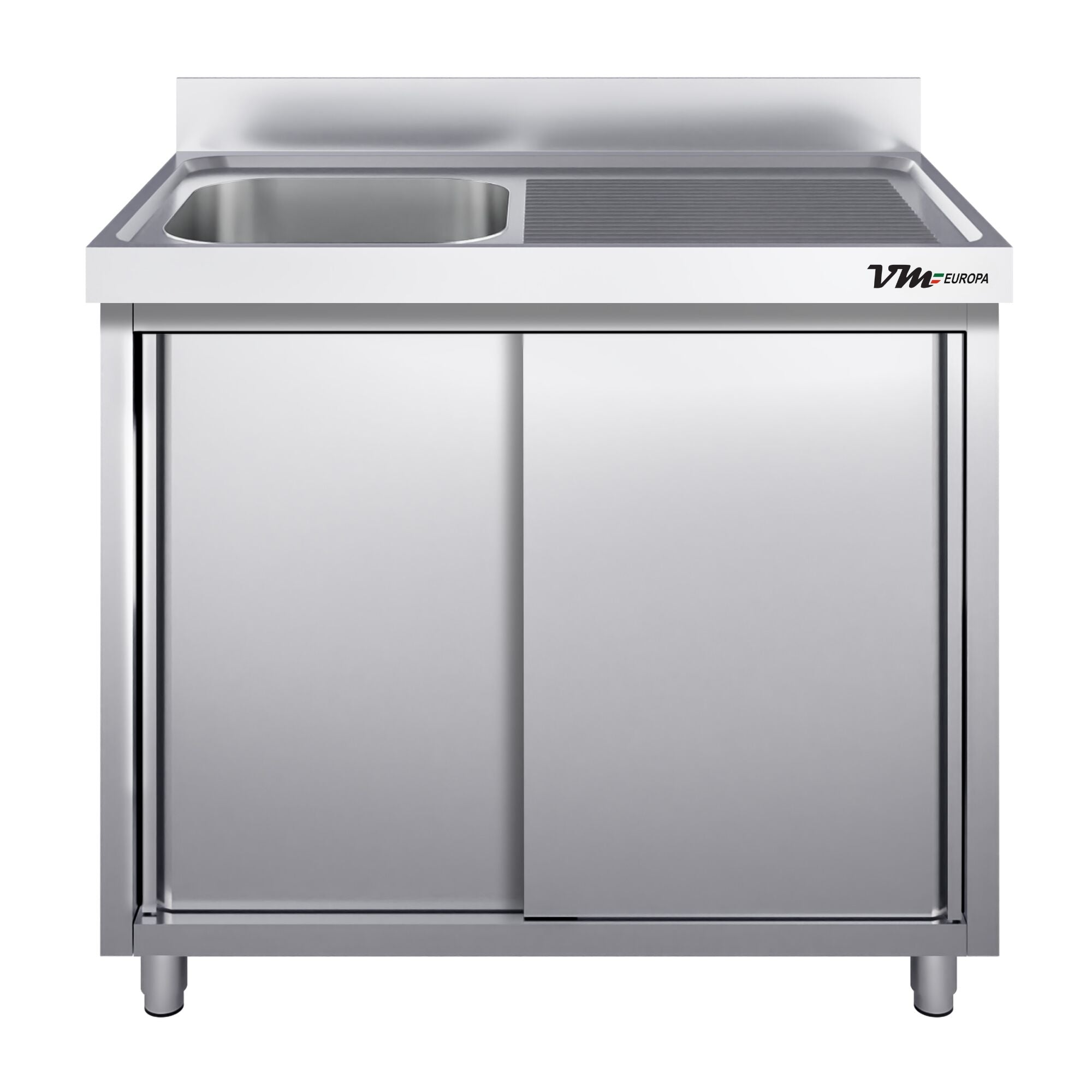 Edelstahl Spülschrank 1 Becken links, mit Aufkantung, ECO - alle Größen montiert