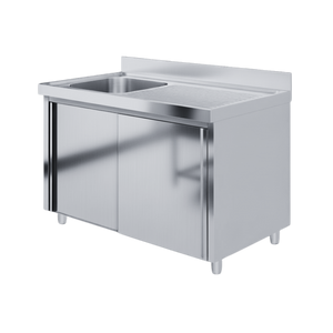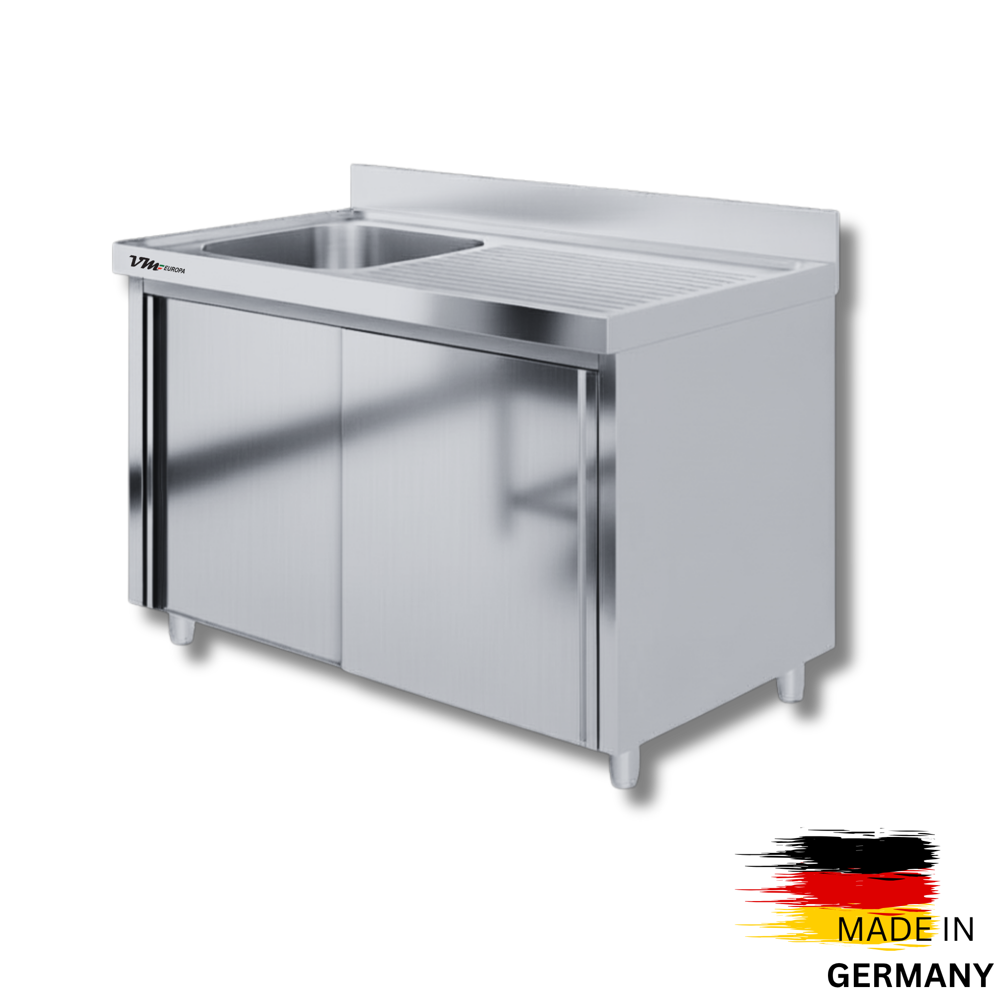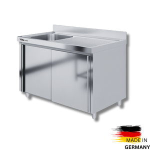 Edelstahl Spülschrank 1 Becken links, mit Aufkantung, Premium - alle Größen montiert
