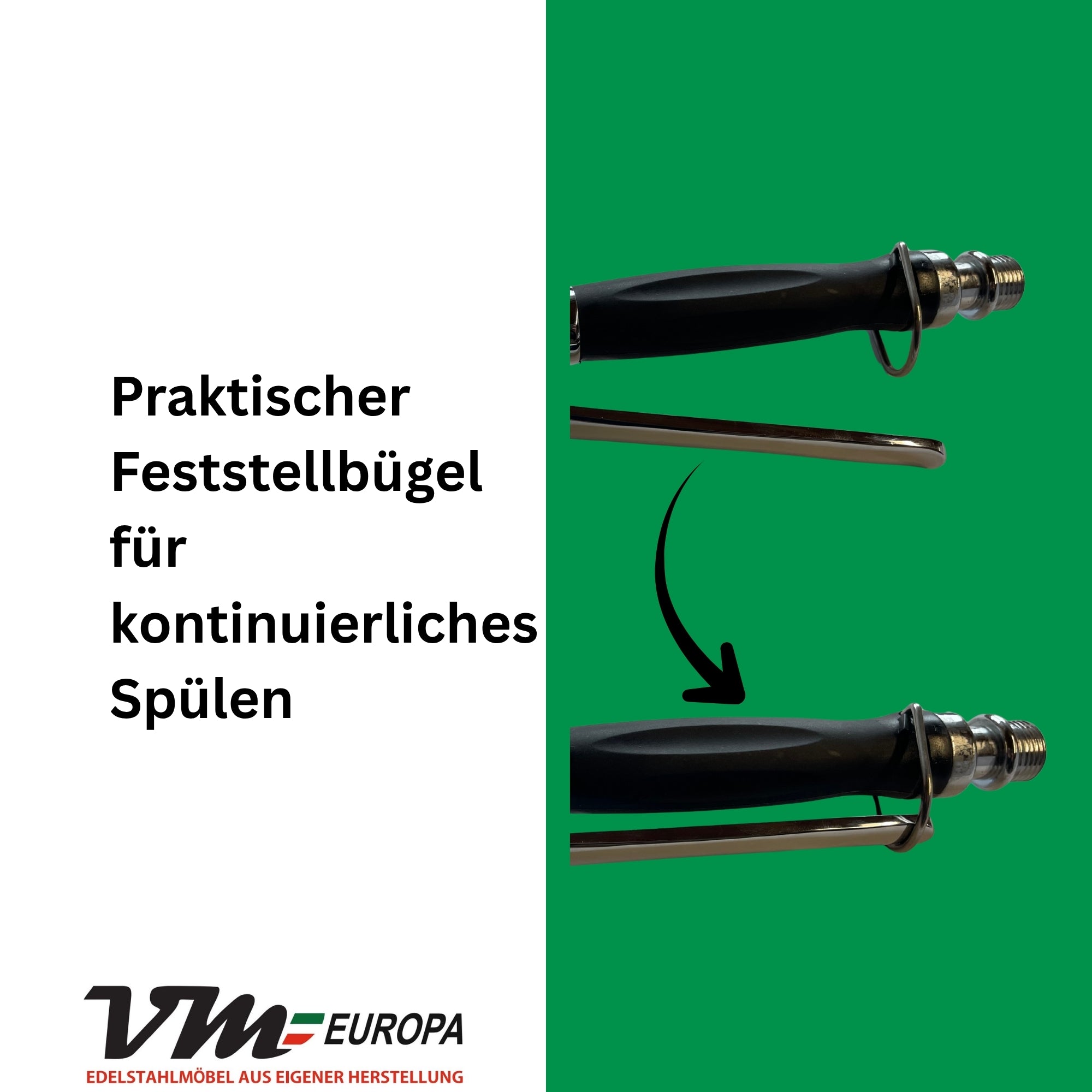 VM Europa Profi Gastro Handbrause Schwarz mit Feststellbügel | 1/2" Standard-AG | Ersatzbrause für Geschirrbrause | 24,5cm lang